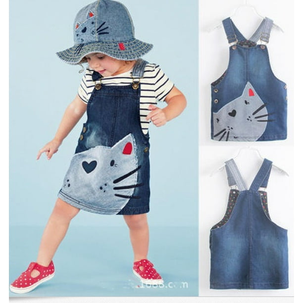 Canis Little Baby Girl Cartoon Cat Light Wash Denim Pinafore Dress Strap Dress Walmart Com Walmart Com