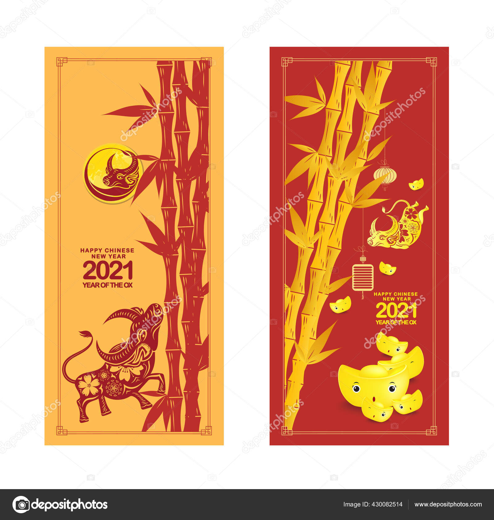 Set Feliz Año Nuevo Chino 2021 Banners Verticales Para Redes — Vector de stock © ngocdai86 #430082514