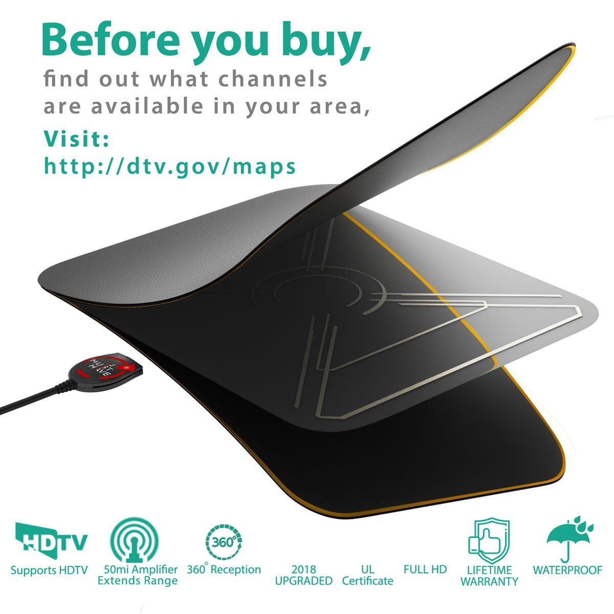 2020 Newest Amplified 50+Miles TV Antenna - Indoor HDTV Antenna with Amplifier TV Channels Digital for TV VHF/UHF 4K 1080p Signals Free Gain 13ft Cable - Walmart.com - Walmart.com